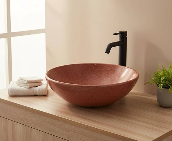 Transform your cooking or wash areas with the striking beauty of Lakha Red Granite countertops. The bold red tones, combined with subtle mineral flecks, create a captivating surface that resists heat, stains, and everyday wear. Whether used in a modern kitchen or a classic vanity setup, this granite offers a perfect balance of functionality and flair. Choose from polished or honed finishes to match your design vision.