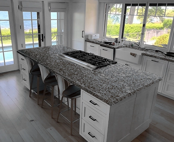 Elevate your kitchen or bathroom with the calming sophistication of Madampally Blue Granite countertops. The cool undertones and fine-grain detailing offer a contemporary yet natural aesthetic. Resistant to stains, scratches, and heat, this granite is designed to perform under pressure while maintaining its refined appearance. A perfect fusion of style and practicality, ideal for daily use in modern homes.