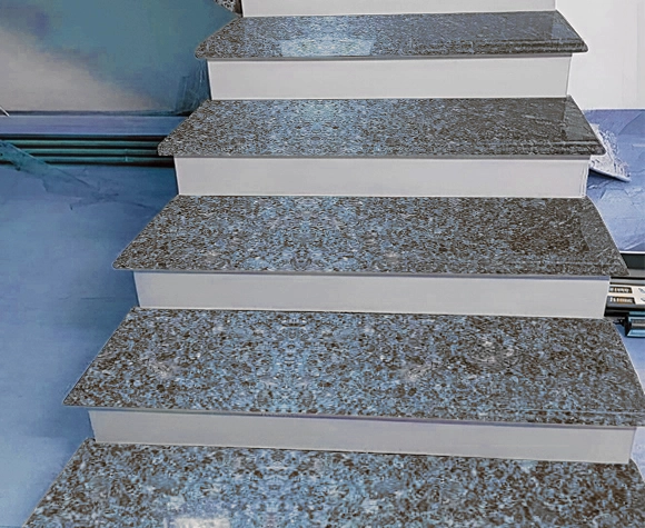 Madampally Blue Granite staircases combine strength with subtle elegance. The soft bluish hues and consistent patterns add a soothing visual flow to vertical spaces. Built to endure weather changes and heavy loads, this granite is ideal for both indoor and outdoor installations. Anti-skid finishes are available to enhance safety without compromising its sleek, modern look.